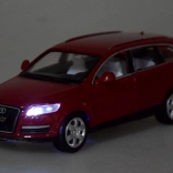 Spielzeugauto SUV Audi Q7 ist ein Auto, das für das Fahren in der Stadt bestimmt ist. Das Auto wurde sehr sorgfältig und ästhetisch mit Augenmerk auf kleinste Details gefertigt, was sicher jeden kleinen Fahrer erfreuen wird. Das Auto verfügt über Sound- und Lichteffekte, zu öffnende Türen, Kofferraum und Motorhaube. Das Auto fährt durch Rückwärtsbewegung des Spielzeugs auf einer glatten Oberfläche mithilfe des Friction-Power-Mechanismus.