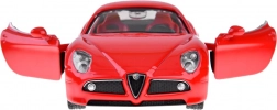 Dieses Modellfahrzeug des Alfa Romeo 8C Competizione wird mit größter Sorgfalt auf Details hergestellt. Es verfügt über öffnende Türen, was ein authentisches Autogefühl bietet. Weitere Funktionen sind lauter Motor und Lichteffekte, wie vordere und hintere Lichter und ein beleuchtetes Armaturenbrett. Die Karosserie besteht aus Metall, die Räder sind aus Gummi und das Chassis ist aus Kunststoff. Das Fahrzeug wird vom Friction-Power-System angetrieben, das eine realistische Vorwärtsbewegung auf glatten Flächen durch Drücken und Lösen ermöglicht.