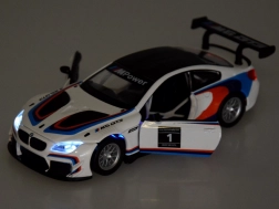 Genießen Sie Rennatmosphäre mit dem detailreich gestalteten Modell des BMW M6 GT3. Die Metallkarosserie, präzise Linien und die ikonischen M‑Power-Farben verleihen dem Auto ein realistisches Erscheinungsbild, während die robuste Verarbeitung mit Kunststofffahrwerk eine lange Lebensdauer beim Spielen wie auch beim Ausstellen in der Sammlung gewährleistet.