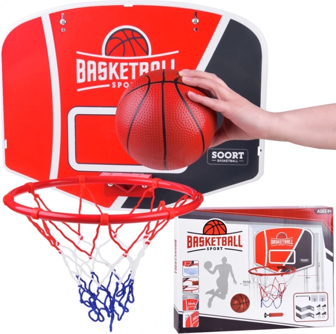 Komplettes Basketball-Set für Kinder und Anfänger mit einer robusten Platte 46 × 36 cm, Metallring mit einem Innendurchmesser von ca. 30 cm, farbigem Netz, Ball und Pumpe. Einfache Wandmontage drinnen und draußen, ideal für Präzisionstraining und aktive Unterhaltung. Robuste Ausführung, komplettes Zubehör und universeller Einsatz garantieren viel Sportspaß.