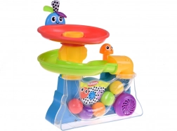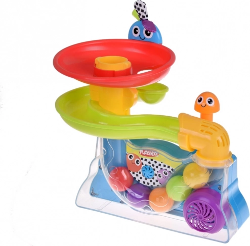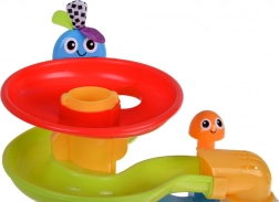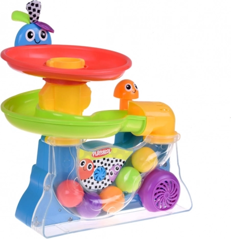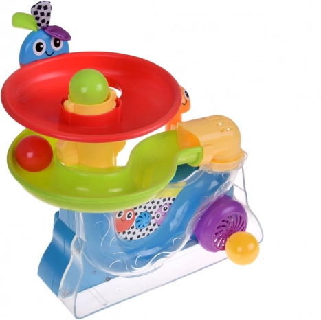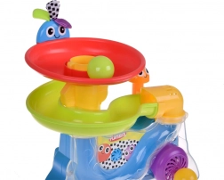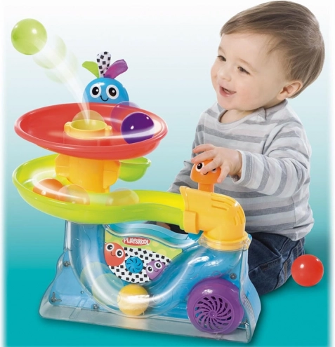 Dieses ikonische Spielzeug von PLAYSKOOL verbindet die Faszination rollender Bälle mit einfacher Bedienung. Kinder werfen die Bälle in den Trichter, beobachten ihr Wirbeln und ihr Wiederauftauchen oben, von wo aus sie die Spiralbahn hinabkullern. Rhythmische Bewegungen und leuchtende Farben fesseln die Aufmerksamkeit und fördern die Konzentration.