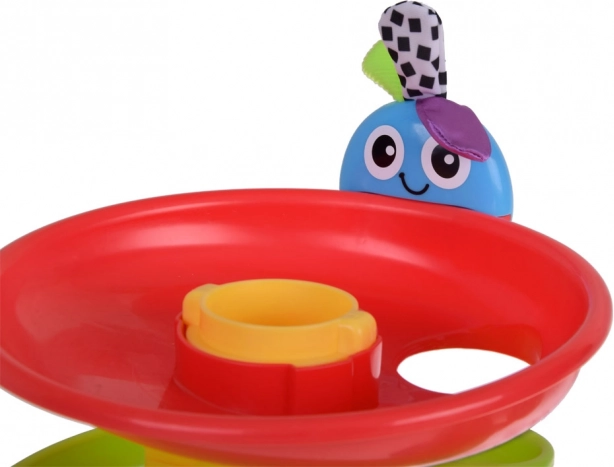 Die Bälle werden durch den Luftstrom fröhlich hochgepustet und kehren nach oben zurück, von wo sie die bunte Spiralbahn hinabrollen. Kinder verfolgen fasziniert die Bewegung und lernen das Prinzip von Ursache und Wirkung.