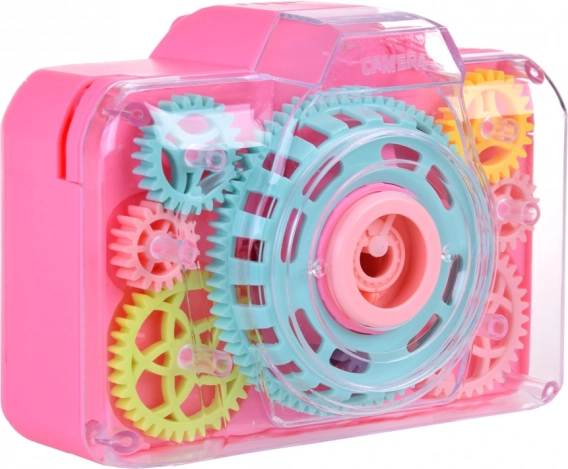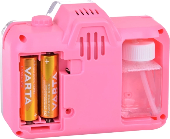 Diese verspielte Seifenblasen-Kamera bietet Kindern den magischen Effekt von Blasen kombiniert mit einem realistischen Fotoerlebnis. Beim Drücken des Auslösers starten Lichteffekte, das Verschlussgeräusch und aus der Öffnung werden Seifenblasen ausgeblasen, die eine bezaubernde Atmosphäre beim Spielen drinnen und draußen schaffen.