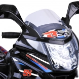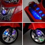 Dieses akkubetriebene Kinder-Motorrad begeistert kleine Fans schneller Maschinen mit sportlichen Linien und reichhaltiger LED-Beleuchtung. Die kompakten Abmessungen eignen sich für Innenräume sowie für befestigte Wege im Hof oder auf der Terrasse. Ein weiches Band auf den Rädern dämpft Vibrationen und reduziert Geräusche.