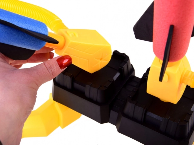 Das Set beinhaltet: eine Abschussbasis, 4 Katapultarme, 2 Rohre, 2 Zylinder, 2 Luftkammern, 6 Schaumstoffraketen und dekorative Aufkleber. Leicht zusammen- und auseinanderzubauen für bequeme Anwendung.