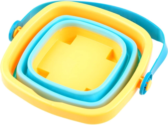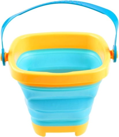 Dank der Verwendung von flexiblem Silikon an den Wänden und härterem Kunststoff an Boden und Rändern lässt sich der Eimer leicht zusammenfalten nach dem Spielen. Es nimmt weniger Platz ein und ist einfach zu transportieren und zu lagern. Die Förmchen haben kleine Löcher, sodass sie auch als Becher für Wasser verwendet werden können.