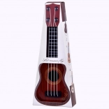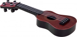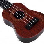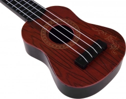 Die Grafik in Holzoptik verleiht der Ukulele den Look eines echten Instruments und motiviert Kinder zum Spielen.