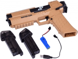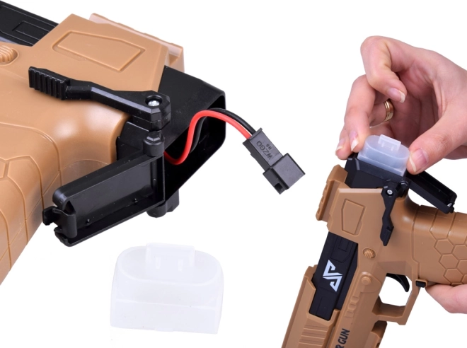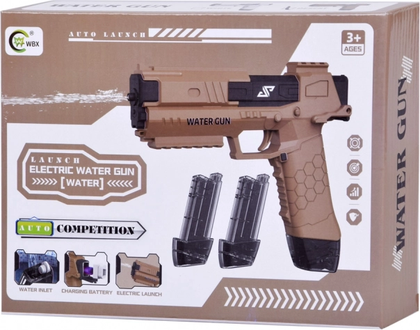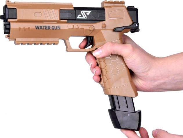 Diese moderne Wasserpistole nutzt einen elektrischen Mechanismus – Sie drücken den Abzug und der Motor startet sofort einen kontinuierlichen Wasserstrahl. Das robuste Kunststoffgehäuse und der ergonomische Griff mit rutschfester Textur gewährleisten einen sicheren Halt und eine einfache Bedienung auch für jüngere Kinder.