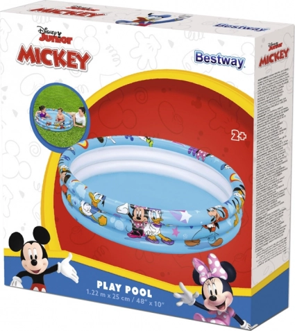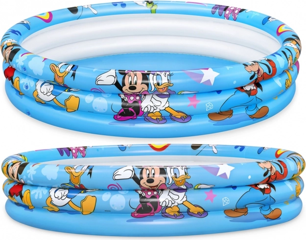 Der leichte, tragbare aufblasbare Pool von Bestway mit lizenzierter Grafik MICKEY & FRIENDS ist perfekt für kindliche Wasserspiele im Garten. Drei separate Ringe halten die Form und bewahren die Luft besser, während weiches, getestetes Vinyl Komfort und Widerstandsfähigkeit im Alltag sichert.