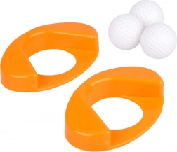 Drei leichte Kunststoffschläger, drei Bälle und zwei Löcher mit Basis bieten alles, was man für Minigolf drinnen wie draußen benötigt.