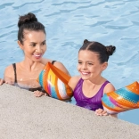 Die auffällige orange Farbe und sommerliche Schmetterlingsgrafik sorgen für hervorragende Sichtbarkeit im Pool, am See und am Meer. Die Schwimmflügel sind ideal für Kinder im Alter von 5–12 Jahren mit einem empfohlenen Gewicht von 24–60 kg.