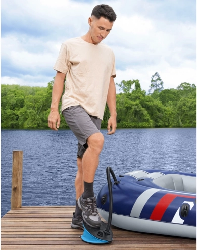 Sie wechseln bequem zwischen dem Modus INFLATE/DEFLATE, sodass Sie Luft nicht nur zuführen, sondern auch schnell ablassen. Die Pumpe lässt sich mit Fuß oder Hand bedienen – die Fußbedienung ist komfortabel und schnell, ideal am Strand, am See oder im Garten.
