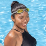 Robuste Polycarbonatgläser schützen die Augen dank UV-Filter, und die Antibeschlag-Beschichtung reduziert das Beschlagen für ein kristallklares Bild beim Training und Freizeitschwimmen. Die Brille ist 100 % latexfrei und somit sanft zur empfindlichen Haut.