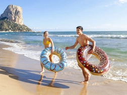 Dieser stylische Ring in Form eines angebissenen Donuts überzeugt mit kräftigen Farben und einem verspielten Look. Mit einem Durchmesser von 107 cm eignet er sich für Erwachsene und ältere Kinder und bietet hervorragende Unterstützung beim Entspannen auf der Wasseroberfläche.