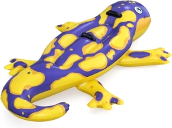 Der aufblasbare Reit-Schwimmer in fröhlich bunter Salamanderform ist ideal für Pool, See und Meer. Dank der kräftigen Farben ist er gut sichtbar und Kinder schließen ihn sofort ins Herz. Zwei integrierte Griffe erleichtern das Aufsteigen, Festhalten beim Spielen und das Tragen.