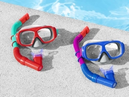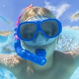 Mit diesem leichten und robusten Set genießen Kinder stundenlangen Spaß im Pool, See oder Meer. Dank verstellbarem Band und Silikondichtung passt sich die Maske leicht der Gesichtsform an und bietet klare Sicht durch Polycarbonatgläser mit UV-Schutz. Der Schnorchel ist mit einem weichen Silikonmundstück für natürliches Atmen und einem Spritzwasserschutz am oberen Ende ausgestattet.