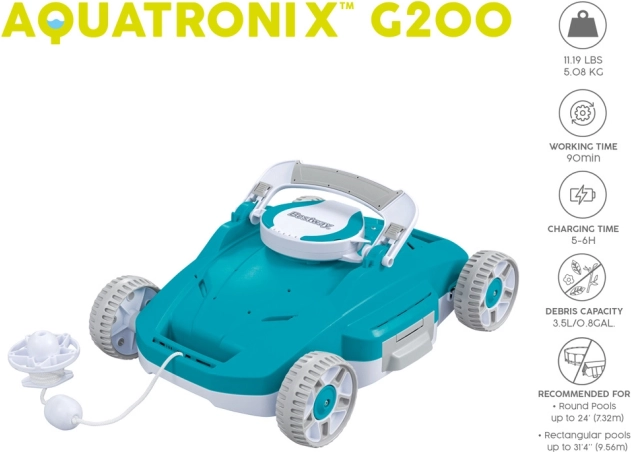 Der automatische Poolreiniger AquaTronix der Marke Bestway ist die ideale Lösung für Poolbesitzer, die Wert auf Komfort bei der Pflege legen. Die selbstständige Konstruktion ermöglicht eine einfache Wartung von sauberem und klarem Poolwasser und sorgt so für sicheres und erfrischendes Baden für Sie und Ihre Kinder an heißen Tagen.