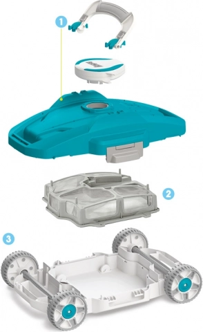 Das Gerät wird über einen einzigen Netzschalter bedient und verfügt über integrierte Sensoren, die AquaTronix nach dem Eintauchen ins Wasser zum Starten der Reinigung aktivieren und beim Herausnehmen aus dem Wasser ausschalten. Dies schützt den Motor und verlängert seine Lebensdauer. Die große integrierte Kammer fasst bis zu 3,5 l Verunreinigungen. Nach vollständiger Aufladung arbeitet der AquaTronix etwa 90 Minuten und bietet so ausreichend Zeit für einen kristallklaren Pool. Dieser kabellose Roboter hat dank des patentierten Richtstroms volle Bewegungsfreiheit, wodurch er beim Auftreffen auf Wände oder Hindernisse die Richtung ändern kann. Außerdem vereinfachen Schnellverschlüsse die Wartung und Reinigung – einfach die Kammer öffnen und Verunreinigungen entfernen.