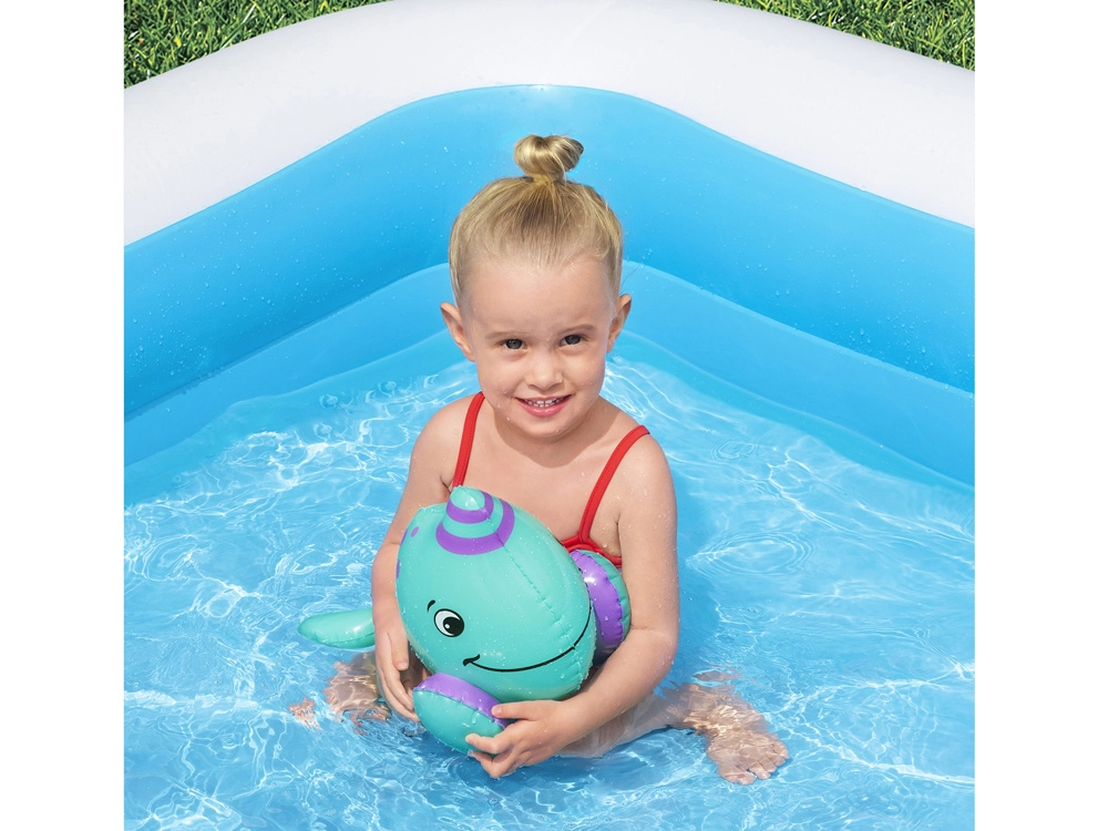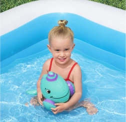 Die aufblasbare Kreatur von Bestway bringt Kindern Spaß beim Baden oder im Urlaub am Wasser. Der einfache Aufblasmechanismus sorgt für Komfort beim Tragen und Gebrauch überall, dank der kompakten Abmessungen. Gefertigt aus hochwertigem und strapazierfähigem Vinyl, das eine lange Lebensdauer garantiert. Es kann leicht von kleinen Kinderhänden ergriffen werden, was das Spielerlebnis noch verbessert.