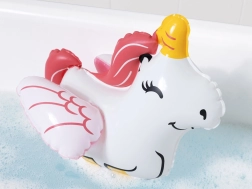 Kinder tauchen in eine Fantasiewelt ein, wenn sie während des Badens mit dieser aufblasbaren Kreatur spielen.