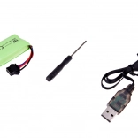 Im Lieferumfang sind ein 7,4‑V‑500‑mAh‑Akku und ein USB‑Kabel. Schnell aufladen und zurück ins Geschehen.