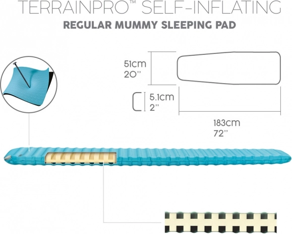 Die Stärke von 5,1 cm und der R-Wert 4,7 halten die Wärme und bieten stabilen Halt auch auf unebenem Untergrund. Ideal für erholsamen Schlaf beim Camping in kühleren Bedingungen.