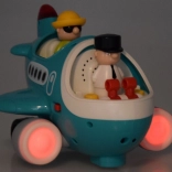 Im Lieferumfang sind zwei Figuren enthalten – Pilot und Passagier –, die im Cockpit bzw. in der Kabine Platz nehmen können. Im hinteren Teil des Flugzeugs befindet sich ein öffnbarer Laderaum mit rotem Knopf und herausnehmbarem Köfferchen für ein noch realistischeres Spiel. Dank der zweistufigen Lautstärkeregelung lässt sich das Spiel leicht an die Umgebung und empfindliche Öhrchen anpassen.