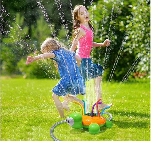Der Schildkröten-Sprinkler ist das ideale Sommerspielzeug für Kinder – er erzeugt einen erfrischenden Wasserbrunnen, der in alle Richtungen sprüht. Dank der flexiblen Düsen entstehen verspielte Effekte und Abkühlung für die ganze Party. Der Anschluss geht im Handumdrehen: einfach auf den standardmäßigen 1/2"-Gartenschlauch stecken und den Wasserdruck stufenlos auf die gewünschte Intensität einstellen.