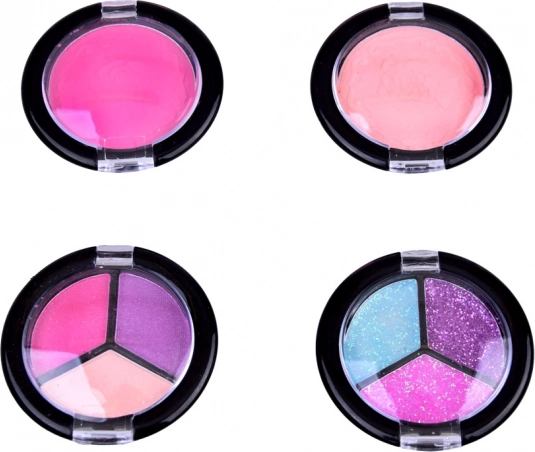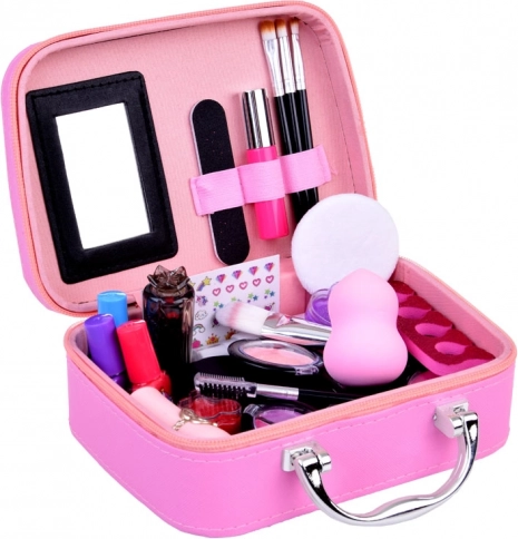 Umfangreiches Zubehör: Das Etui fasst verschiedene Kosmetikprodukte wie Lidschatten, Lipgloss, Nagellacke, Pinsel und Applikatoren. Alle Produkte sind kindersicher und leicht abwaschbar.