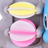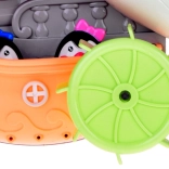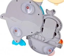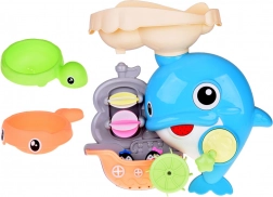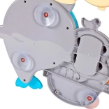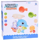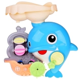 Der fröhliche Badedelfin ist ein farbenfrohes interaktives Spielzeug, das Kinder zu Wasserexperimenten einlädt. Einfach Wasser in den oberen Tank gießen und beobachten, wie sich die Wasserräder drehen, ein Wasserfall startet und sich die Delfinflosse bewegt. Das Boot mit den kleinen Pinguinen regt Geschichten beim Baden an.