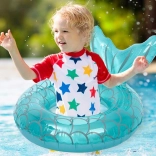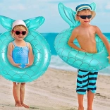 Die türkise Farbe und das Schuppenmuster fallen am Strand wie auch am Pool auf und motivieren Kinder zu aktiver Bewegung im Wasser.