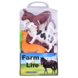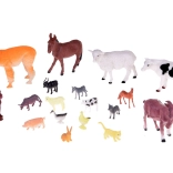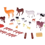 Kuh, Pferd, Hund, Esel, Schaf mit Lamm, Ziegen, Alpaka, Schwein, Büffel, Katze, Kaninchen, Ente und Henne, ergänzt durch Zaun, Heuballen, Stämme, Busch und eine Spielunterlage.