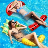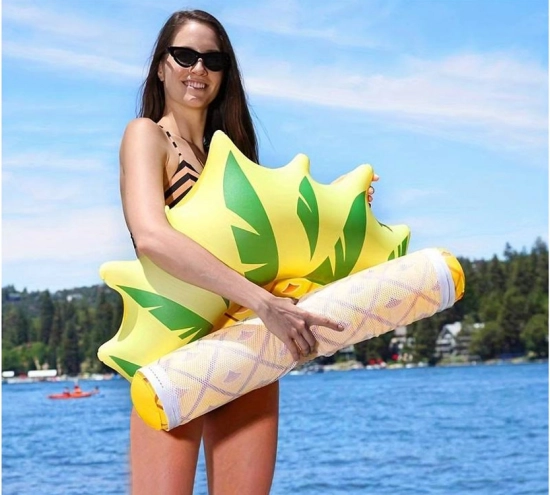 Die aufblasbare „Pineapple“-Hängematte verbindet verspieltes Design mit cleverer Konstruktion: zwei seitliche Luftzylinder für Stabilität und dazwischen ein robustes Nylongitter, auf dem Sie bequem liegen. Sie bleiben teilweise im Wasser und werden beim Sonnenbaden natürlich gekühlt.