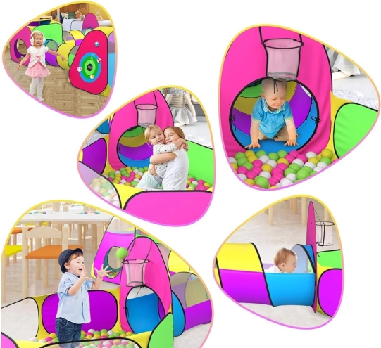 Begrüßen Sie eine moderne Zeltkombination, die nicht nur Spaß, sondern auch Lernen bietet! Dieses Komplettset besteht aus ganzen fünf Teilen, die sich kombinieren lassen, um ein riesiges Spielzentrum zu schaffen, oder einzeln verwendet werden können – so haben Kinder die Freiheit, die unterschiedlichsten Modelle zu gestalten.
