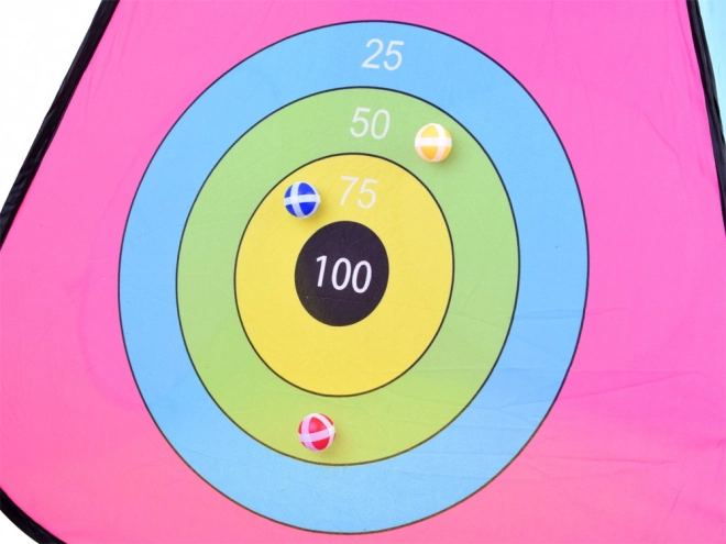 Dreieckszelt: Mit Zielscheibe für Klettbälle und speziellen Öffnungen, die den Farben der Bälle entsprechen.