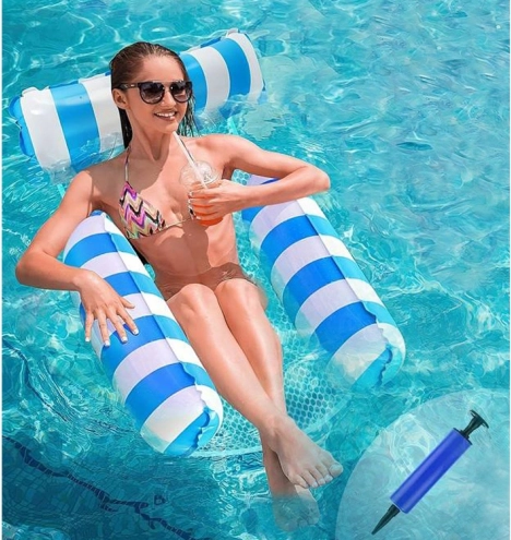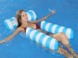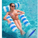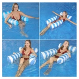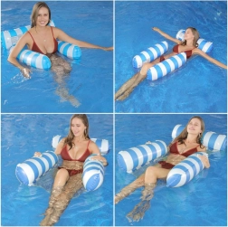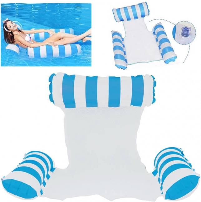 Verabschieden Sie sich von der gewöhnlichen Luftmatratze und begrüßen Sie die einzigartige Lösung – eine Hängematten-Liege, ideal für heiße Sommertage. Sie ist so konzipiert, dass ein teilweises Eintauchen ins Wasser möglich ist, sodass Sie beim Sonnenbaden stets angenehm gekühlt bleiben. Die Liege ist mit aufblasbaren Elementen aus strapazierfähigem PVC ausgestattet und mit einem Nylonnetz verbunden, um maximalen Komfort zu bieten. Ihr elegantes blau-weißes Design wird zum Hingucker auf Ihren Urlaubsfotos.