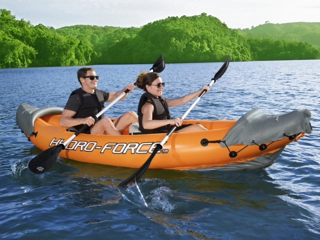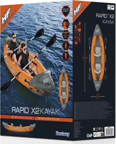 Hydro-Force Lite-Rapid X2 ist ein konstruktionssicheres Kajak, das dank seiner Abmessungen von 321 x 88 cm leicht zwei Personen Platz bietet. Das Kajak ist mit aufblasbaren Sitzen mit Rückenlehnen und einer I-Beam-Konstruktion für mehr Stabilität und Komfort ausgestattet. Boston-Ventile sorgen für schnelles Aufpumpen und Entleeren. Das Kajak ist auch mit einer abnehmbaren Finne ausgestattet, die die Richtungsstabilität und Manövrierfähigkeit verbessert. Hergestellt aus robustem PVC-Material, widersteht das Kajak leicht Seitenwinden und bietet ein angenehmes Paddelerlebnis.