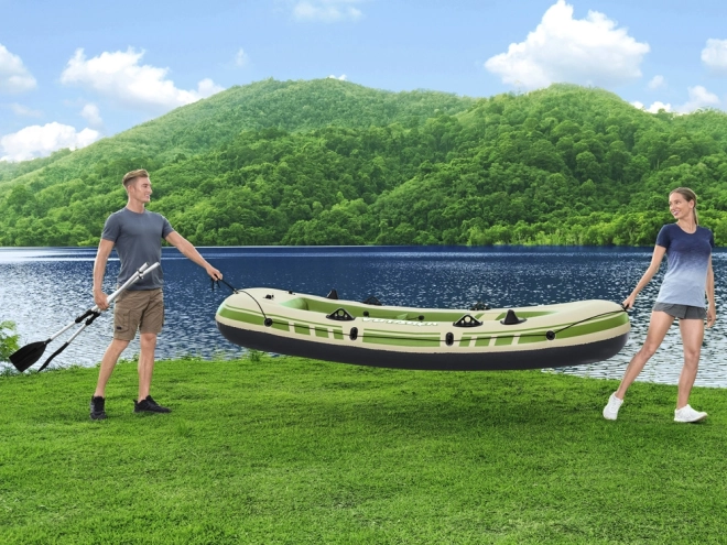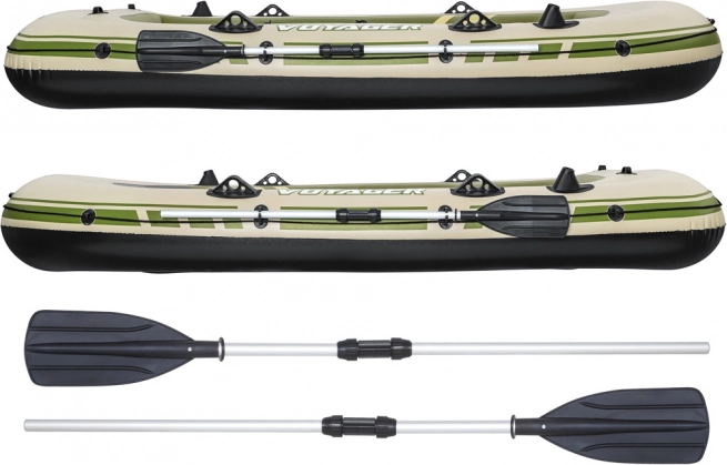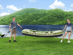 Das Boot ist mit aufblasbaren Sitzkissen und einem aufblasbaren Boden ausgestattet, die für Komfort während Ihrer Fahrt sorgen. Nach dem Abenteuer können Sie es einfach rollen und in der robusten Tasche aufbewahren. Es hat eine maximale Belastung von bis zu 360 kg, was die Sicherheit aller Passagiere garantiert.