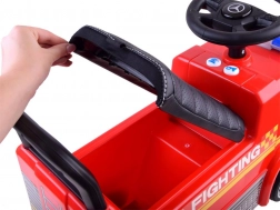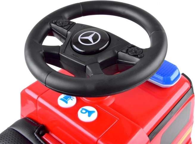 Geben Sie Ihrem Kind Spaß und Sicherheit mit diesem lizenzierten Mercedes Laufwagen in Form eines Feuerwehrwagens. Hergestellt aus hochwertigem Kunststoff, bietet er außergewöhnliche Haltbarkeit und Farbbeständigkeit. Dank des bequemen Sitzes mit Rückenlehne ist die Fahrt nicht nur komfortabel, sondern auch sicher. Ein Blockierungsmechanismus verhindert das Umkippen nach hinten.
