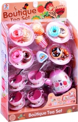 Tablett, Kännchen, Tassen mit Untertassen, Löffel und eine Auswahl an Desserts – alles, was Kinder für eine Bewirtung von Puppen und Freundinnen/Freunden brauchen und für viele Stunden kreativen Spiels.