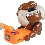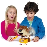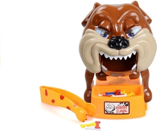Nehmen Sie die Knochen aus dem Napf, aber passen Sie auf, den Hund nicht zu wecken, denn er ist sehr wütend! Alles, was Sie tun müssen, ist, den wütenden Hund für das Spiel vorzubereiten. Setzen Sie dazu die Batterien ein (nicht im Lieferumfang enthalten) und spannen Sie ihn, bis er seinen Kopf auf die linke Pfote legt und die Augen schließt. Das Spiel beginnt mit dem jüngsten Spieler – er wählt einen Knochen aus und versucht, ihn mit der beiliegenden Pinzette herauszunehmen. Wenn der Hund aufwacht, scheidet der Spieler aus dem Spiel aus. Um das Spiel fortzusetzen, muss der Bulldogge wieder zum Schlafen gebracht werden. Das Spiel geht weiter, bis nur 1 Spieler übrig bleibt, den der Hund nicht gebissen hat – dieser Spieler ist der Gewinner.