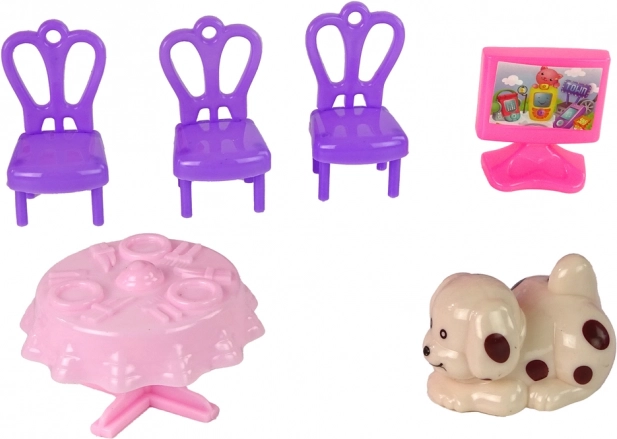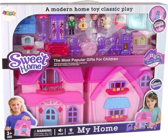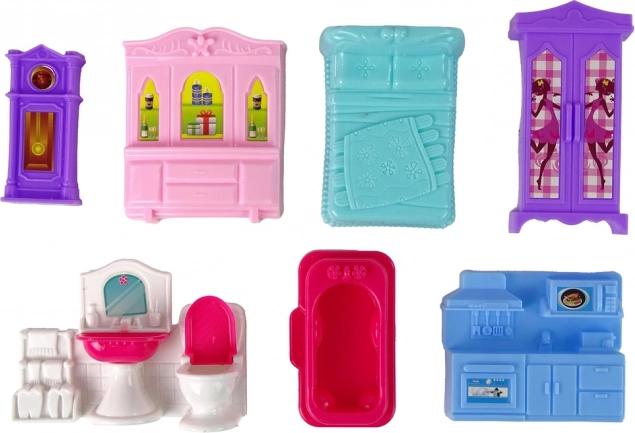 Zum Set gehören auch niedliche Möbelkomponenten und Zubehör, die die Spielmöglichkeiten erweitern und es ermöglichen, verschiedene Zimmer für Puppen einzurichten. Dieses Haus ist nicht nur ein großartiges Mittel zur Unterhaltung, sondern auch ein pädagogisches Werkzeug, das Kinder dazu motiviert, sich um Puppen zu kümmern und eigene Geschichten zu schaffen.