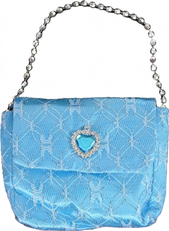 Stilvolle blaue Tasche mit elegantem Silbermuster und herzförmiger Verzierung. Hervorragend für sowohl informelle als auch formelle Anlässe.