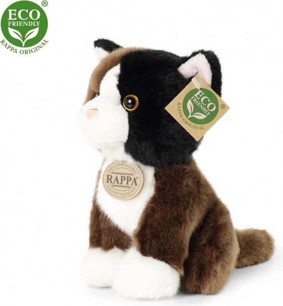 Diese dreifarbige Plüschkatze überzeugt durch ihr realistisches Aussehen und die samtweiche Oberfläche, die zum Kuscheln einlädt. Dank der schonenden umweltfreundlichen Füllung aus recycelten PET-Flaschen ist sie nicht nur angenehm im Griff, sondern auch ressourcenschonend. Ein idealer Begleiter fürs Kinderzimmer und eine schöne Ergänzung für jede Plüschsammlung.