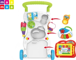 Entdecken Sie das praktische 2-in-1 – eine Lauflernhilfe für die ersten Schritte und zugleich ein multifunktionales Spielzentrum, das mit Ihrem Kind mitwächst. Die große Basis sorgt für hervorragende Stabilität, die hinteren Räder mit rutschfester Auflage helfen sicher zu bremsen und das interaktive Panel bietet jede Menge kluge Unterhaltung.