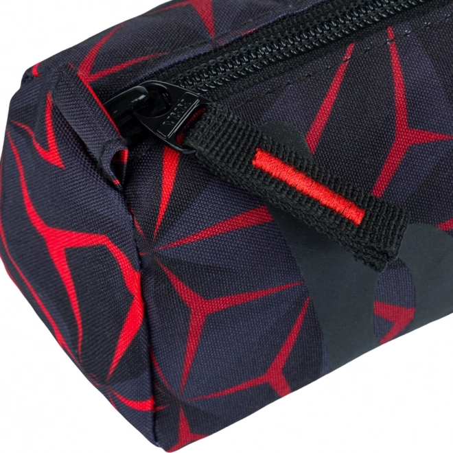 Das Schüleretui Red Polygon besticht durch sein modernes geometrisches Design in Rot und Schwarz. Es wird aus recyceltem Material hergestellt und ist damit ein umweltfreundliches Produkt: