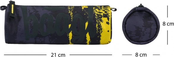 Mit Idealmaßen für Standardschreibutensilien bietet es ausreichend Stauraum, während sein kompakter Entwurf das Mitnehmen erleichtert. Das stilvolle Aussehen wird durch ein modernes schwarzes und gelbes Muster mit dem auffälligen Logo 'Baagl' ergänzt.