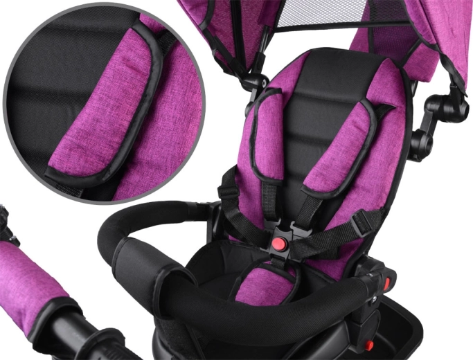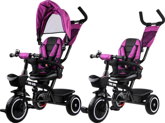 Dieses multifunktionale Dreirad vereint die Vorteile eines Kinderwagens, Laufrads und klassischen Dreirads. Dank des drehbaren Sitzes kann das Kind sowohl zur Bezugsperson als auch in Fahrtrichtung sitzen. Weiche Polsterung, Fünfpunktgurte und ein abnehmbarer Sicherheitsbügel bieten maximalen Komfort und Sicherheit.