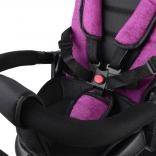 Der Sitz lässt sich im Handumdrehen nach Bedarf drehen. Weiche Polsterung, 5-Punkt-Gurte und ein abnehmbarer Sicherheitsbügel halten den kleinen Fahrer sicher und bequem.