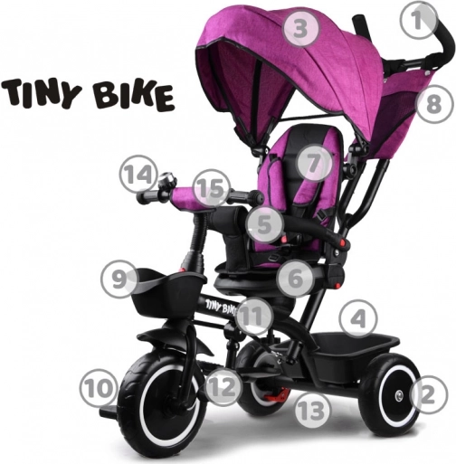 Kinder-Dreirad 3-in-1 mit drehbarem Sitz und Sonnendach TINY BIKE – Rosa